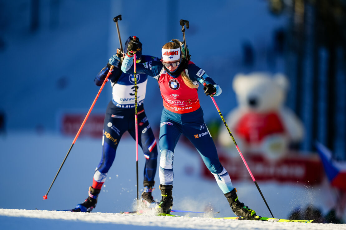 Suvi Minkkinen oli kärkikymmeniköstä ainut, joka ampui kilpailussa puhtaasti kaikki neljä ammuntaa. Hän lähti matkaan kuudentena mutta nousi sijoituksia puhtaiden sarjojen myötä. – Lähdin rakentamaan parasta mahdollista ampumahiihtokilpailua. Tiesin, etten voi lähteä vain hyökkäämään ja kokeilemaan tällaisen alkuviikon jälkeen. Lähdin tunnustelevasti liikkeelle ja siihen nähden olen tyytyväinen, miten kilpailu lähti rakentumaan. Alkuviikko vähän potkii vielä ja ladulla oli vaikeitakin hetkiä. Tilanne pysyi kuitenkin hallussa ja olen todella tyytyväinen lopputulokseen, Minkkinen kommentoi. – Huomenna on lähdettävä rakentamaan mahdollisimman ehjää kilpailua lähdöstä maaliin, ja taistellaan toivottavasti kovista sijoituksista viimeisellä hiihtokierroksella. Kropalle varmasti kova rasti tulossa, mutta täytyy pyrkiä saamaan energiaa koneeseen ja palautumaan huolella, Minkkinen suunnitteli.